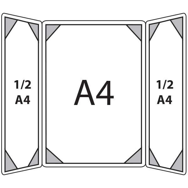 Our gatefold style menus are perfect for compact presentations of short menus. Show up to three pages of information in a centre opening folder with corner mount interiors.